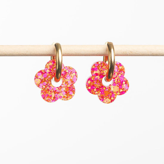 Créoles fleurs Fushia orange